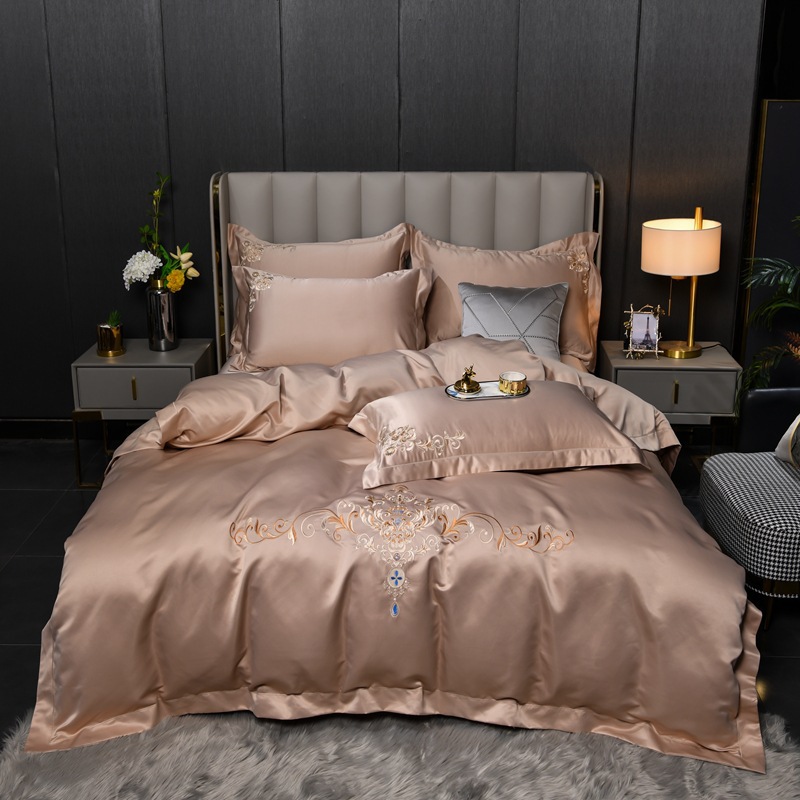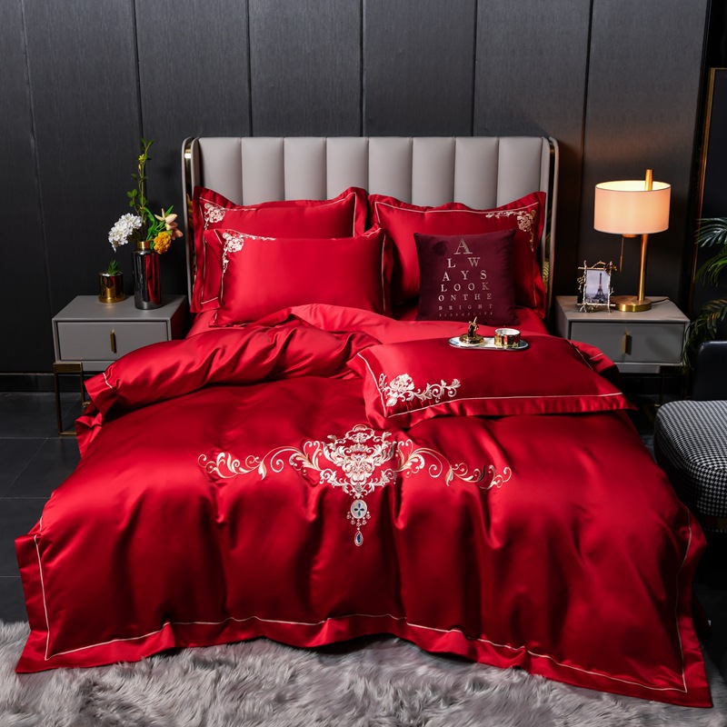Luxury washed satin silk four-piece set 120 light luxury embroidered jacquard bedding sheet 220*240 Wedding bedding set