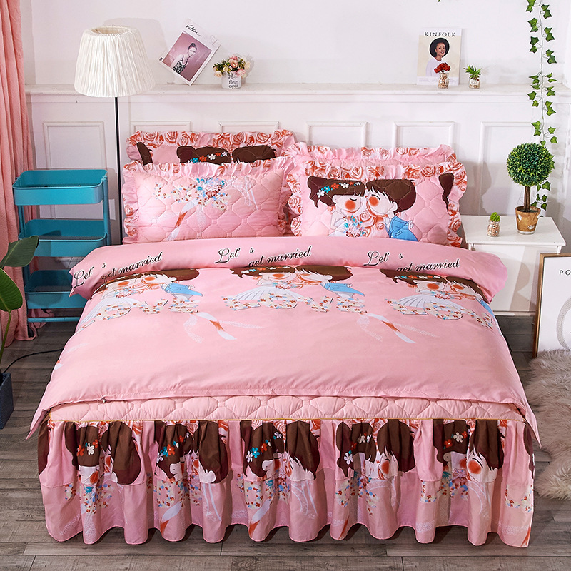 Factory direct selling hot-selling cotton microfiber cartoon children's bed skirt bedding set for home