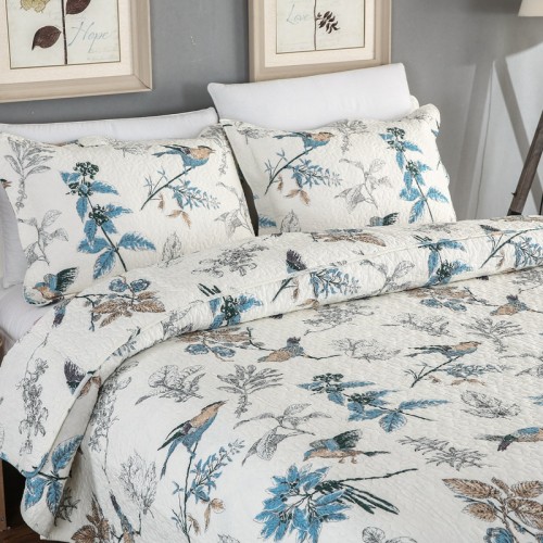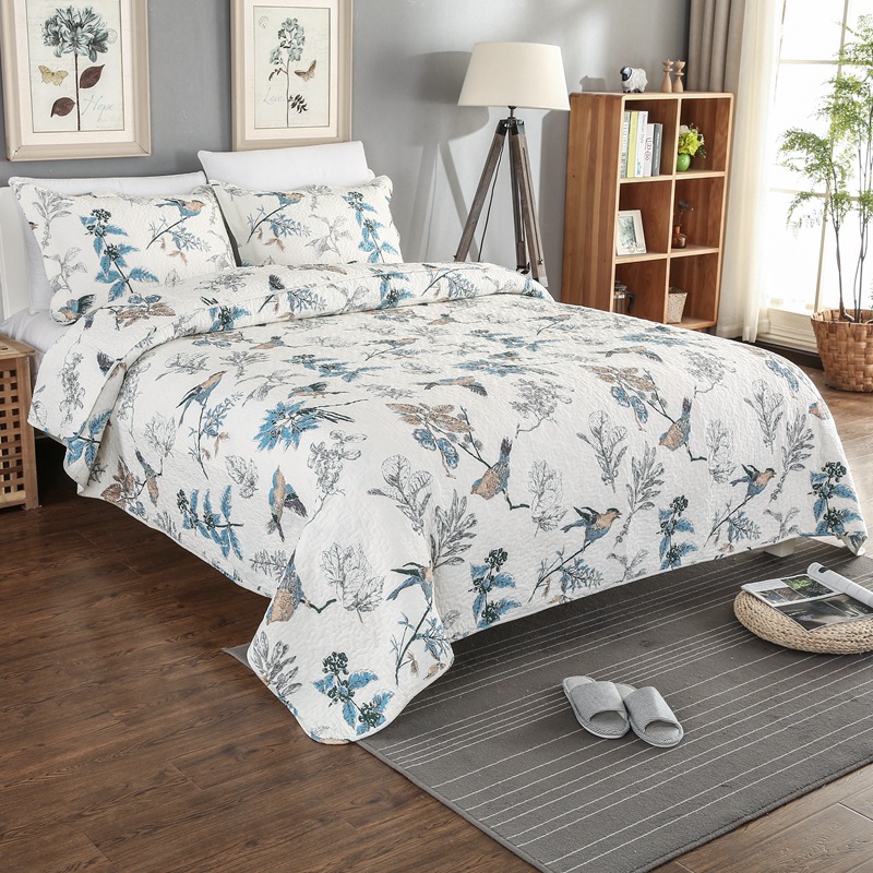 High quality 3pcs set 100% cotton printed patchwork full size elegant embossed quilt bedding bedspread