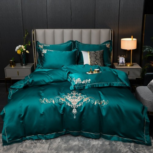Luxury washed satin silk four-piece set 120 light luxury embroidered jacquard bedding sheet 220*240 Wedding bedding set