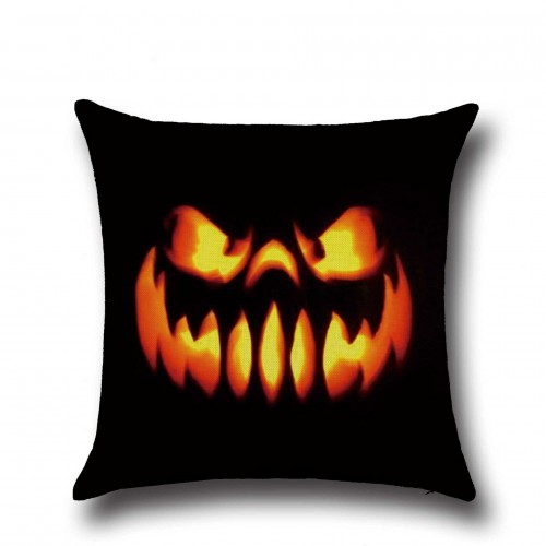 Halloween Horrible Pumpkin Light Pattern Pillowcase Cotton Linen Throw Pillow Cushion Cover