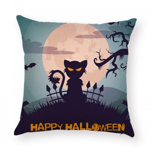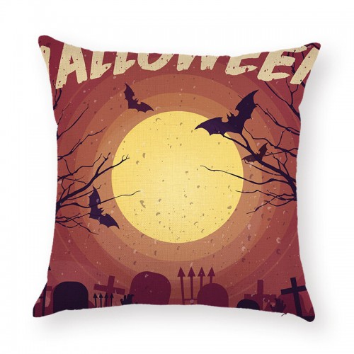 Halloween Terror Pumpkin Bat Owl Pattern Pillowcase Cotton Linen Throw Pillow Cushion Cover