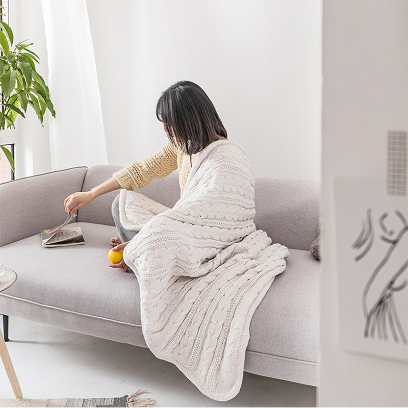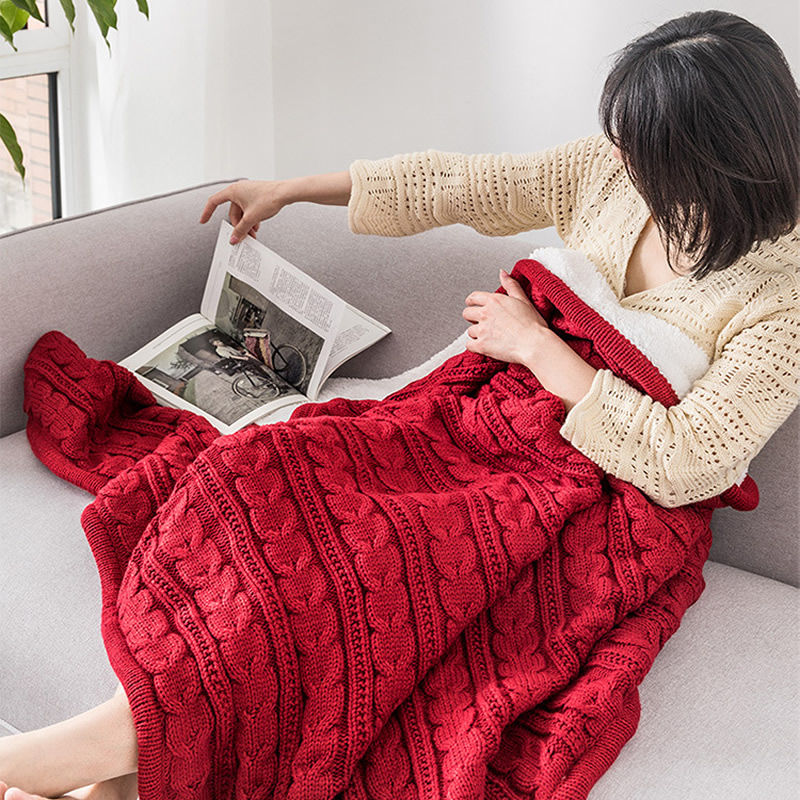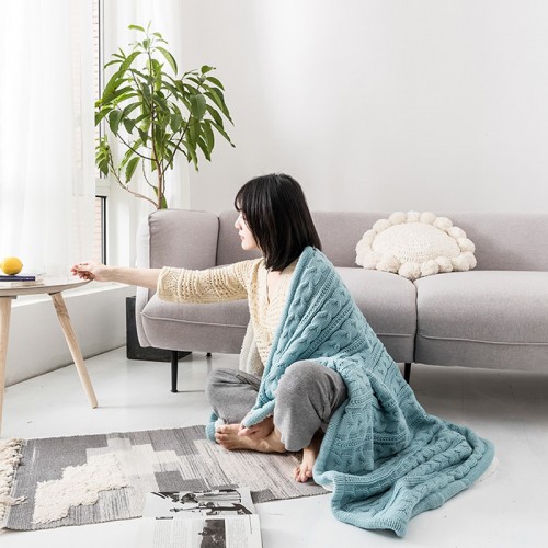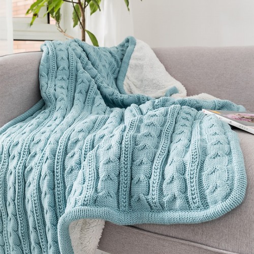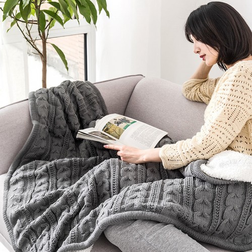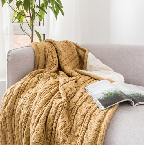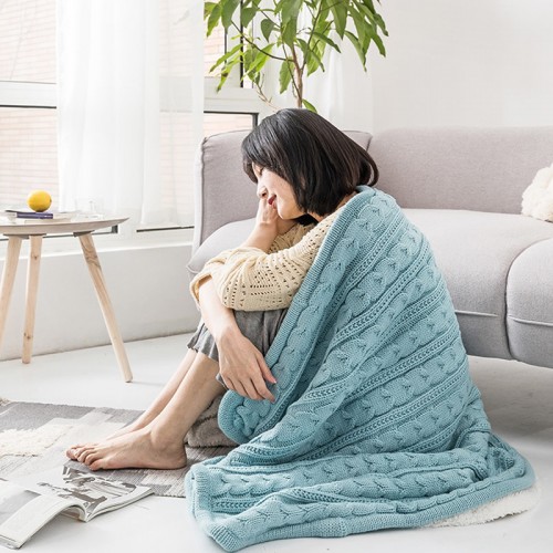 Top Sale chunky plush knitted plain dye fleece throw knitted blankets warm soft blanket for Lunch break